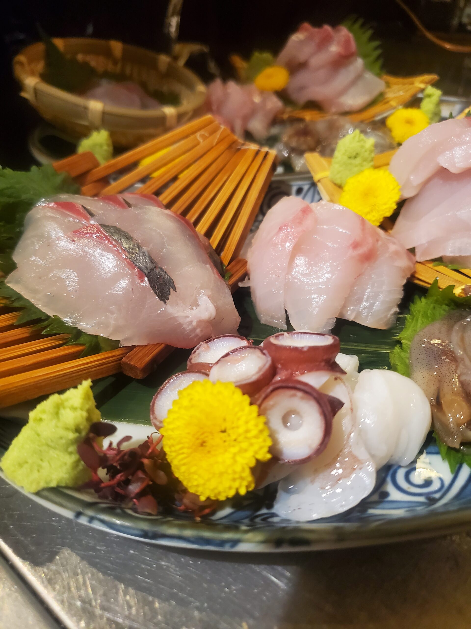 魚串BARのお造り盛り合わせは、**新潟直送の地魚**を中心に構成します。新潟は沿岸で多様な地魚が獲れる地域で、産地直送は鮮度と個性をそのまま届ける手法です。鮮度が高い素材は旨味が際立ち、薄造りや昆布〆などの技法が生きてきます。新潟直送により、普段大阪で見かけない地魚を体験できます。