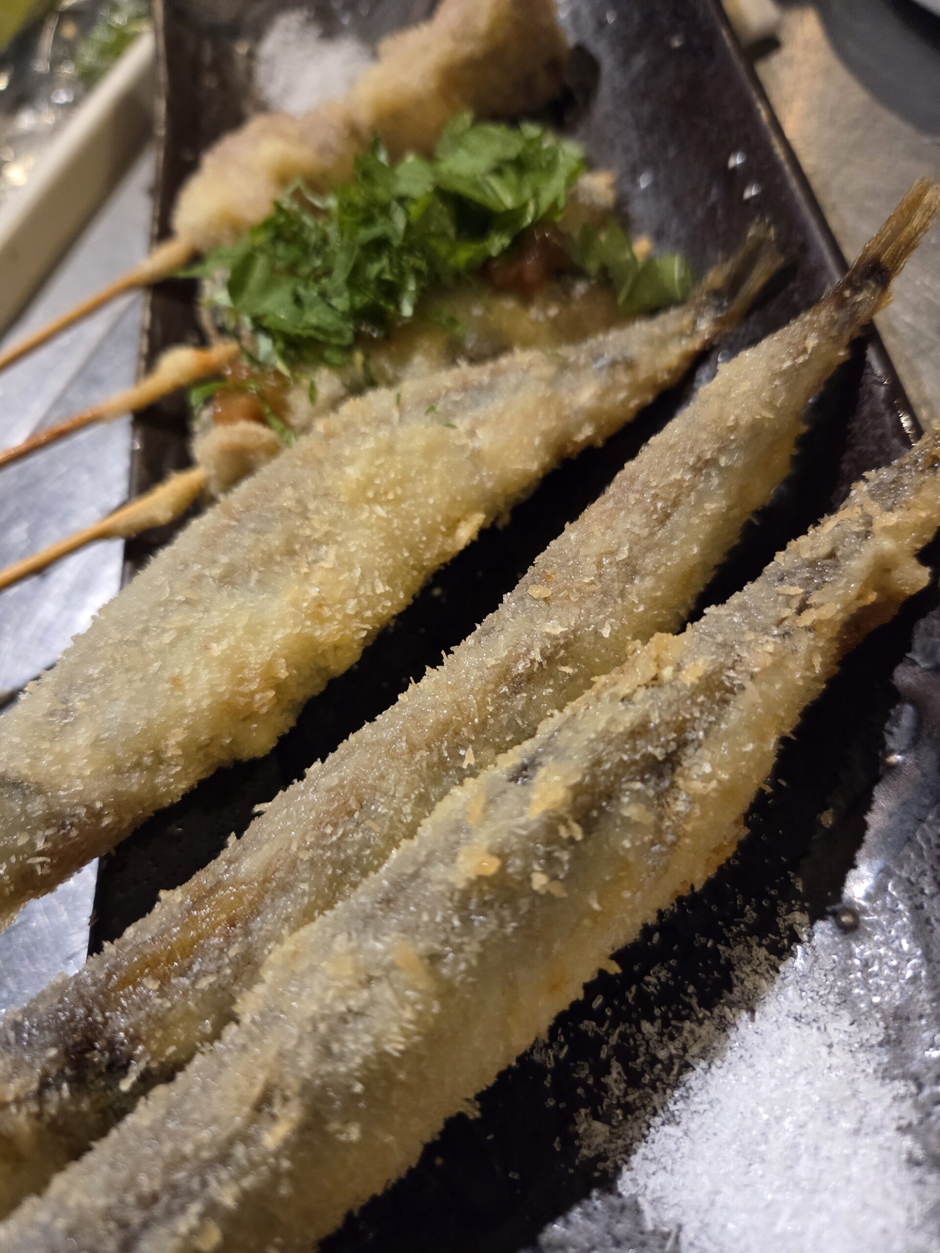 大きめなししゃもの揚げ串は宴席のつまみとして便利です。食べやすいため会話が弾む席で重宝します。提供量を調整すれば複数名での分配にも向いています。